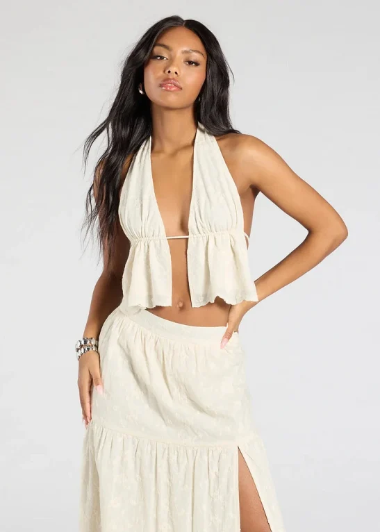 Cream Layered Maxi Skirt Suit
