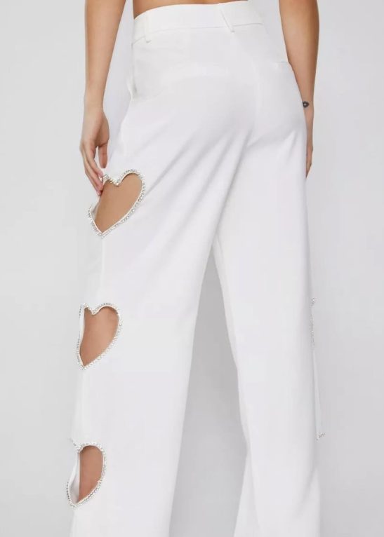 Heart eyes. Feel confident in our blazer, with flirty heart cut outs and sparkling diamante trims, made in high quality satin fabric. Pairs well with the matching pants or mini dress and strappy heels for an occasion look that will take you to all your upcoming parties, from bachelorettes to birthdays to fancy date nights.